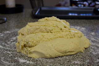 5. On floured surface, roll dough out to 1/4" thickness. It may help to sprinkle dough on the rolling pin as well.